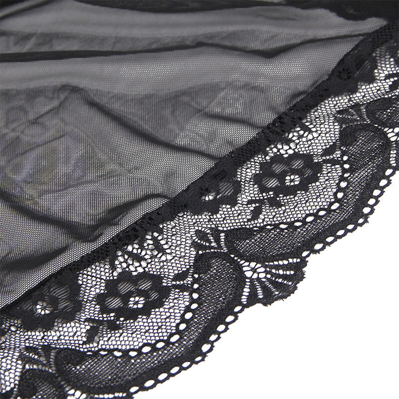 Babydoll Tela de tul transparente Tanga incluido Detalle encaje Talla: S/M Color: Negro Material: 95% Polyester + 5% Spandex